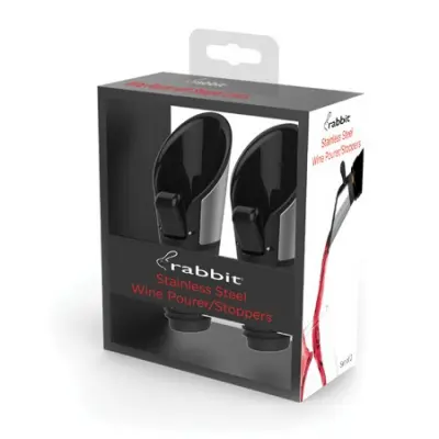 Simplemente coloque el vertedor de acero inoxidable Rabbit® con tapón en su botella de vino y tendrá un vertedor libre de goteo. Cuando la noche haya terminado, simplemente voltea el tapón cerrado para un tapón de vino hermético para sellar tu vino sobrante por otro día.