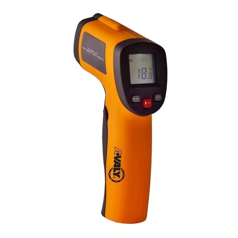 El termómetro infrarrojo VA-INF200 es útil para medir la temperatura en circunstancias en las que los termopares u otros sensores de tipo de sonda no se pueden usar o no producen datos precisos por diversas razones, específicamente, en casos que tratan con objetos en movimiento. Es un instrumento ideal para medir la temperatura sin contacto. Dispone de varias ventajas. Por ejemplo, proporciona resultado de medición inmediatamente, no produce ningún desgaste y puede medir en conductos de alta tensión, campos electromagnéticos o materiales agresivos. Una de sus principales características es que tiene un rango de medición de -50 a 700°c (-58 a 1292°f), ºC y ºF intercambiable, Laser ON/OFF y un suministro de energía para una batería de 9 Volts.