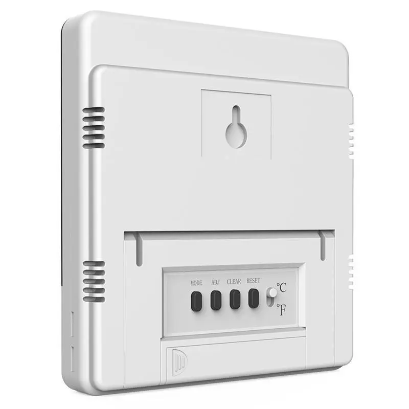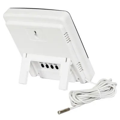 Función de memoria de temperatura y humedad máxima y mínima, interior y exterior. Con soporte posterior y clip magnético.