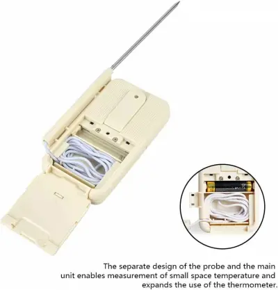 2. El diseño separado de la sonda y la unidad principal permite medir una temperatura ambiente reducida y extiende el uso del termómetro.