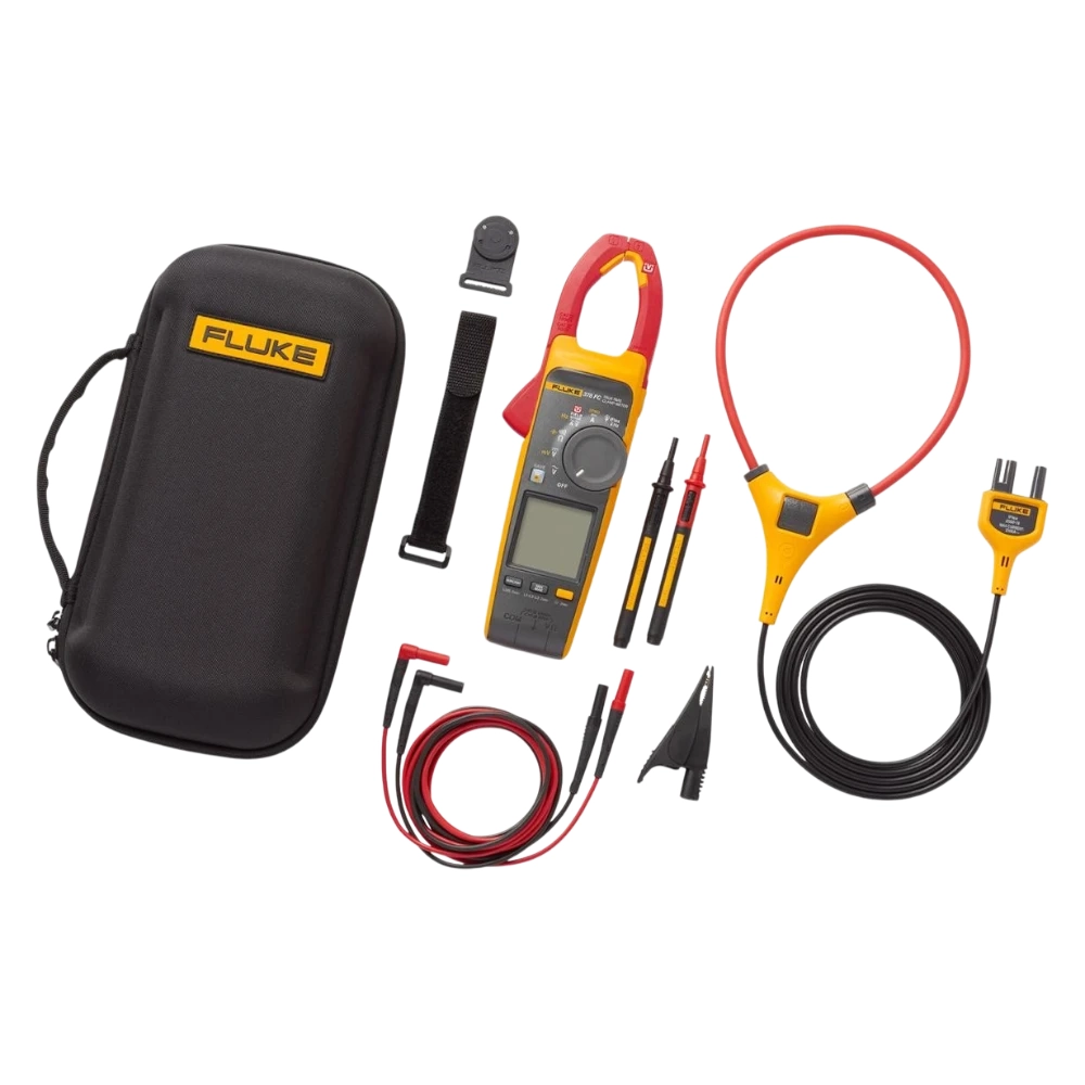 La pinza amperimétrica de verdadero valor eficaz Fluke 378 FC utiliza la tecnología FieldSense™ para obtener medidas más rápidas y seguras sin tocar un conductor con tensión. Obtenga medidas exactas de tensión y corriente con la mordaza de la pinza. Para obtener medidas exactas y fiables de tensión y corriente, basta con conectar el cable de prueba negro a cualquier tierra eléctrico, coloque la mordaza alrededor del conductor y consulte los valores en la pantalla.