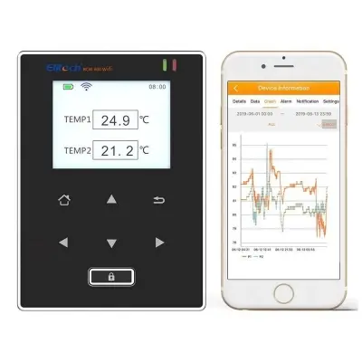 Tiene doble sensor de temperatura. Con una batería de litio recargable incorporada, puede proporcionar carga de datos en tiempo real y servicio de alarma de plataforma incluso en caso de corte de energía en el almacenamiento en frío.